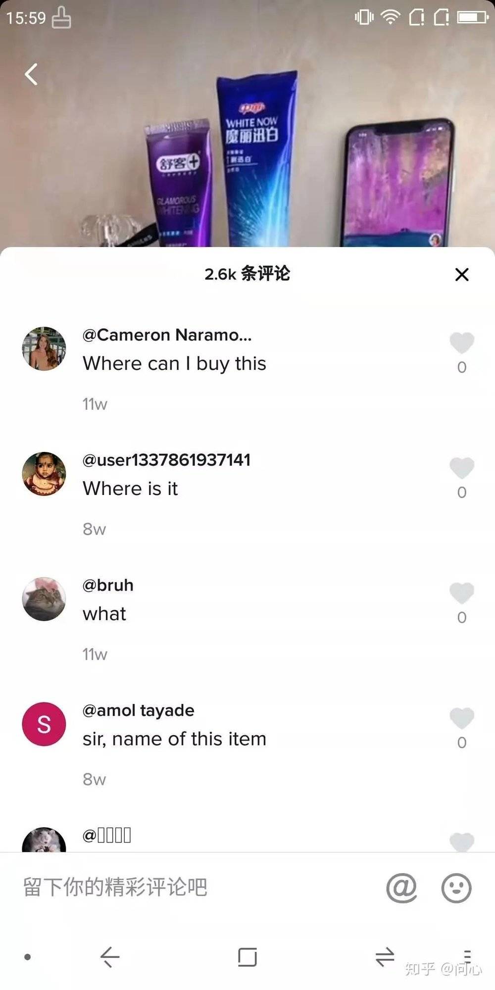 在知乎上,一家专做跨境互联网营销的公司,展示了用TIKTOK卖一款智能牙膏架的成果:这种在中国司空见惯的小商品,在TIKTOK上获得了40多万的点赞,评论区充满了问购买链接的评论。