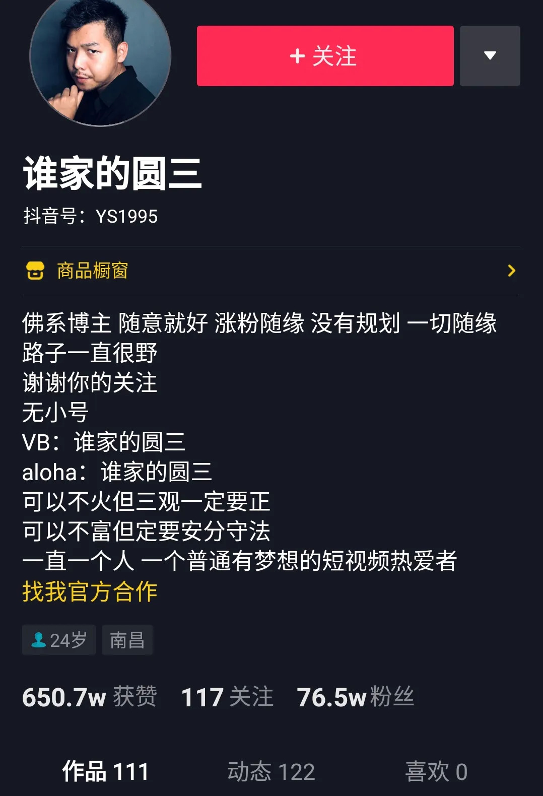 图源圆三抖音主页