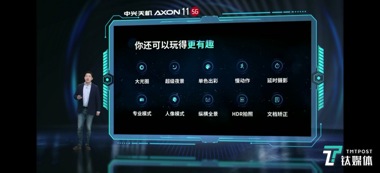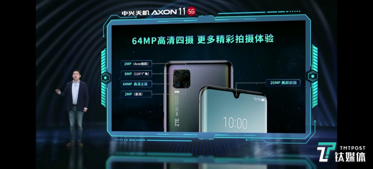 钛媒体3月23日消息,中兴通讯召开线上AR发布会,正式发布中兴首款5G视频手机——中兴天机Axon 11。该款新机采用“滑板形”设计,仅有168g,主打视频拍摄与制作能力,并支持双模5G。