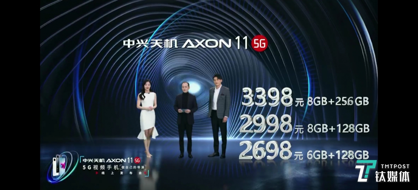 目前,中兴天机Axon 11已于3月23日开启预约,共有6GB+128GB、8GB+128GB以及8GB+256GB三个版本,售价分别为,人民币2,698元、人民币2,998元、人民币3,398元。(本文首发钛媒体,作者/Kiwi)