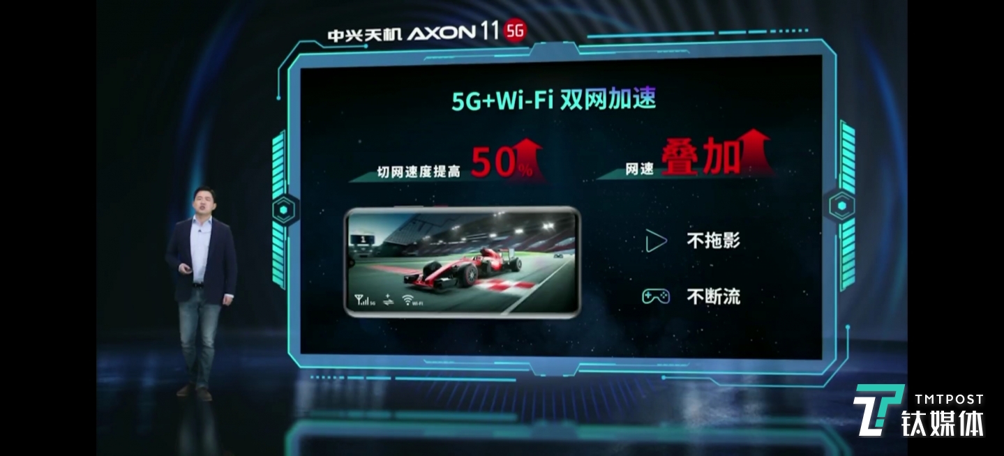 这套SoC组合经过优化后,可以让手机在Wi-Fi和蜂窝网络(4G/5G)实现多路并发,不仅能轻松应对复杂的信号环境,速率叠加,网速将更进一步提速。再配合中兴智能网络加速技术,可实现Wi-Fi向数据网络无缝切换,切网速度优化提升50%。