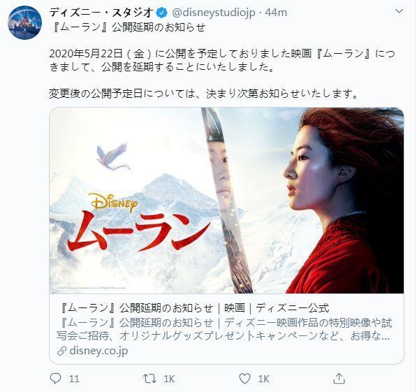 3月24日日本媒体报道,受新冠肺炎影响,迪士尼宣布《花木兰》取消将于5月22日在日本上映的计划,此后上映时间没有确定。而在这次撤档之前,《花木兰》已经在全球范围内经历过一次大规模撤档。