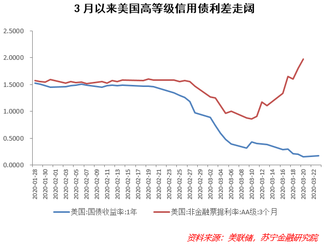 信用利差大,说明在恐慌情绪下投资者风险偏好极低,信用稍差的企业需要付出极高利率才能借到钱,这些高利率与其他优质债券利率形成较大差额。