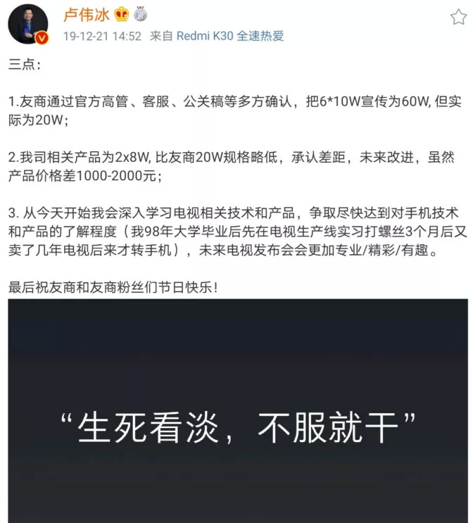 最终,这场争端以卢伟冰发微博承认与荣耀智慧屏之间有差距划上句号。