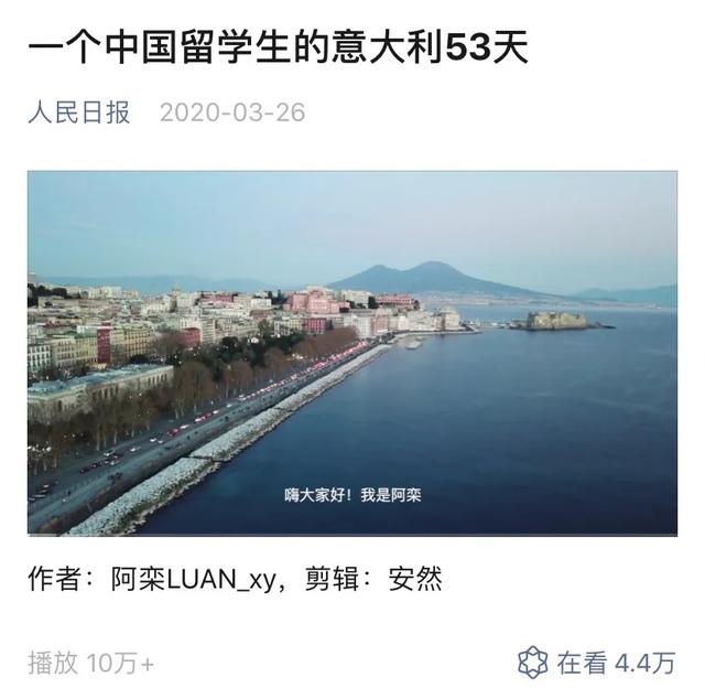 3月14日,央视新闻发布一条微博。标题为「直播!跟中国留学生看意大利如何防疫」,并附上了阿栾在那不勒斯的直播视频。