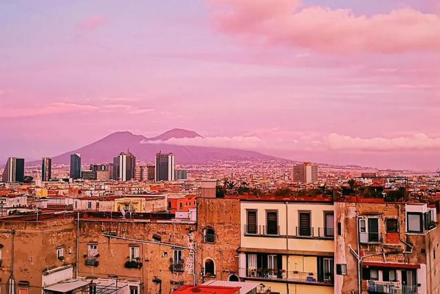 他的房间有个窗户,打开就是大阳台,面对那不勒斯的城市街景,远处就是维苏威火山。傍晚时,晚霞烧遍了整个天空,像颜料洒在宣纸上。