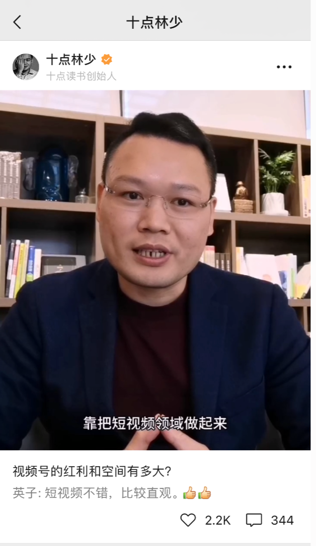 十点林少对视频号的未来发展同样非常看好。他认为未来视频号有可能会跟抖音、快手在短视频领域三足鼎立。