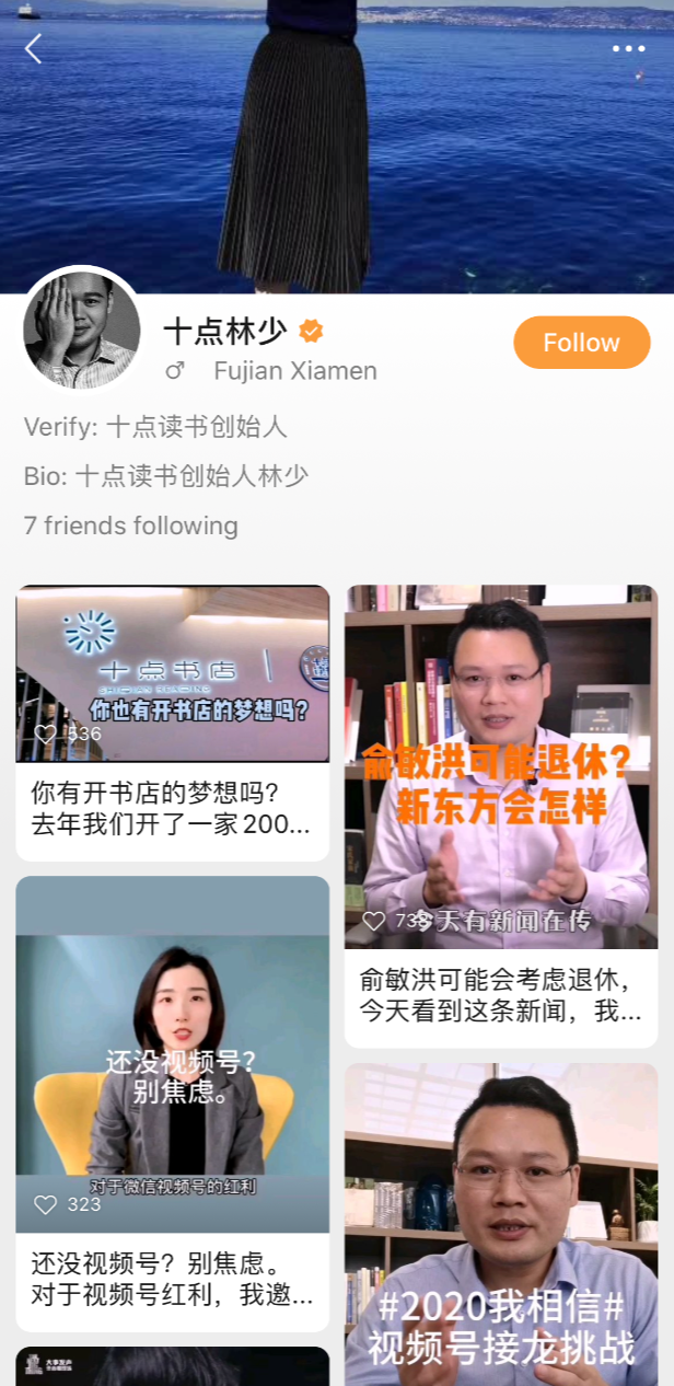 十点林少是第一批受阿喵邀请参加视频接龙的三人之一。他于3月4号开通了视频号,当天就开始发布视频。