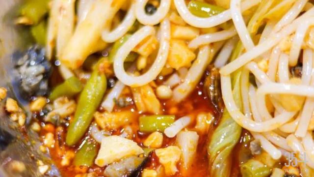 酸笋、花生、油炸腐竹、黄花菜、萝卜干、鲜嫩青菜……螺蛳粉的配菜五花八门,还可以加入各种卤味,丰富的配菜看上去让人很有食欲。其中就不得不提一下酸笋这味配料了,它对螺蛳粉的走红发挥了至关重要的作用。