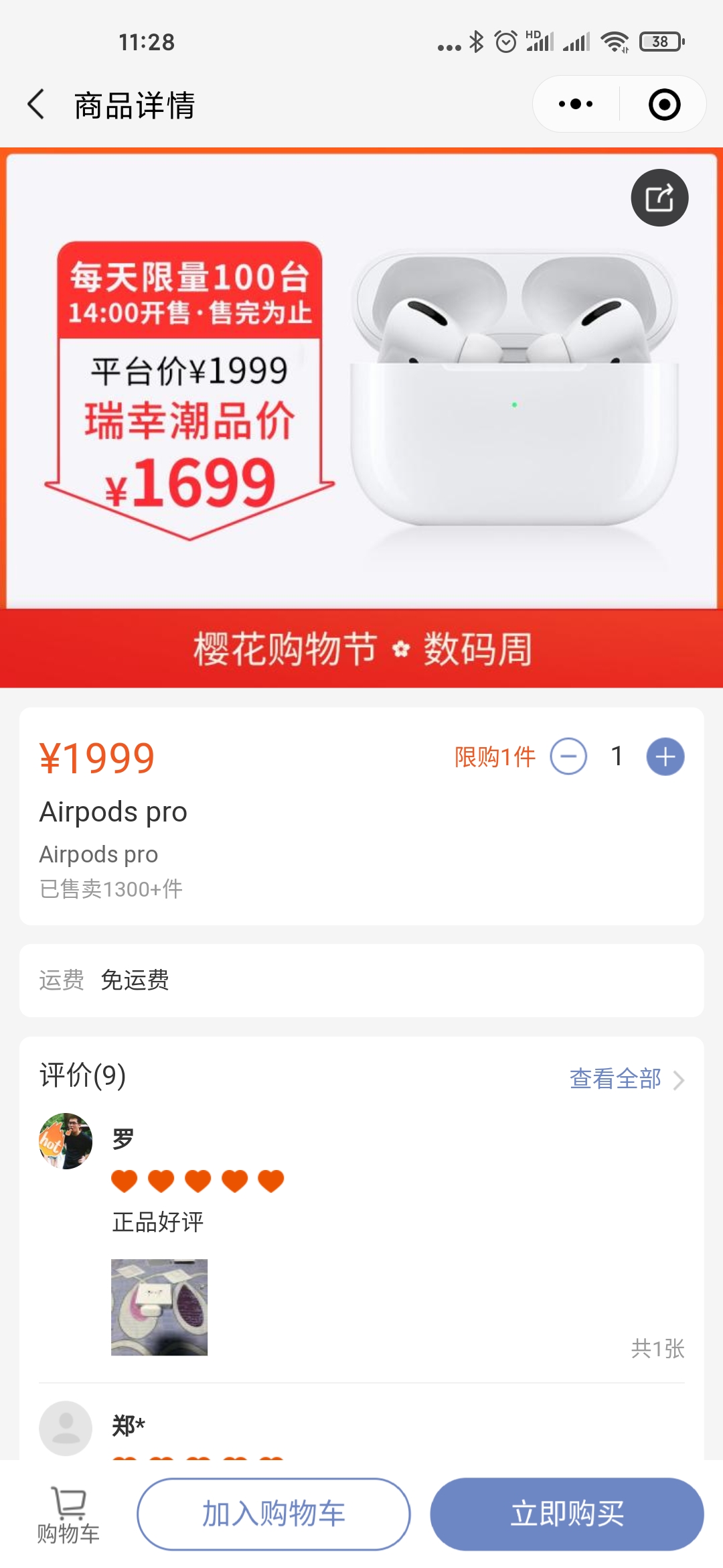 为此,瑞幸也在电商折扣销售数码配件的形式上,做得更容易引导用户多次打开:以最受瞩目的AirPods Pro为例,原价销售的产品不限量供应,不过那些吸引人眼球的价格全都限时限量。想要捡到便宜?那就请多看几次商品页面确保自己能够抢到吧。