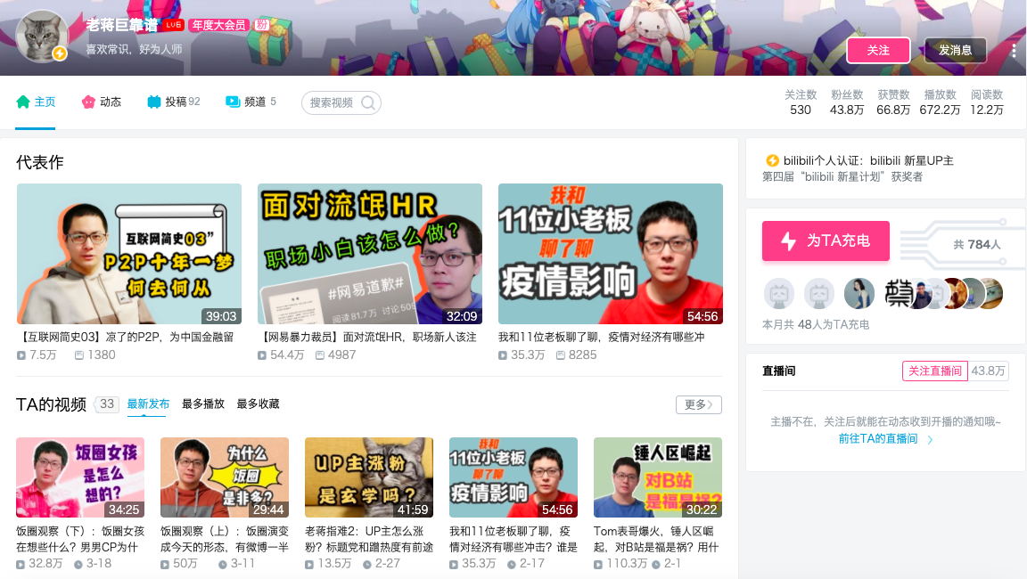 对于公众号自媒体来说,另一个值得关注的视频化机会是长视频——B站有一波科技财经UP主火起来了,如“老蒋巨靠谱”、“巫师财经”、“半佛仙人”等等,均属于知识类UP主,他们将长文章的信息转化成几十分钟的长视频,被B站用户刷着弹幕观看学习,这些UP主的核心竞争力都是内容本身,比如“老蒋巨靠谱”曾经是虎嗅编辑,写长文出身;再比如“半佛仙人”在公众号上做得很好,后来才做UP主。在B站强化知识内容长视频的同时,知乎在2020年也将视频化作为重点,这些都是公众号自媒体的机会,甚至比视频号更值得关注。