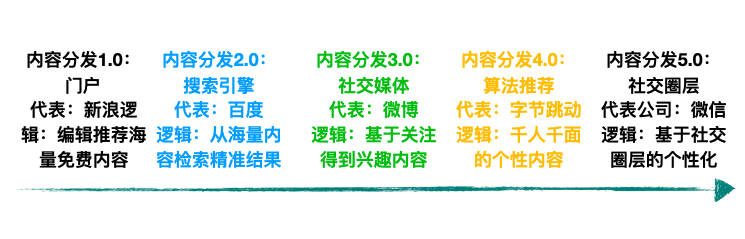 媒体变革的核心不是内容形式,而是分发逻辑。互联网媒体取代纸质和广播媒体不是因为内容的数字化,而是基于数字化技术的分发机制。门户让内容免费,搜索让用户从海量免费内容检索到自己需要的。基于人与人follow关系的微博式推荐本质则是关注流,你关注感兴趣的账号进而得到感兴趣的内容,这是第一代社交媒体,公众号跟微博是一类的,只不过承载内容不同。关注流后千人千面的算法推荐,让用户看到“可能感兴趣”的内容,成就了字节跳动这一新巨头。接下来,基于熟人社交+算法推荐的分发模式有望成就新的内容平台。