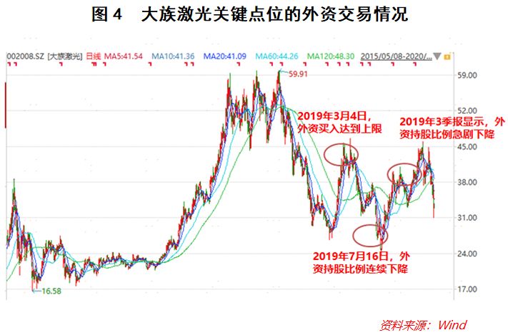 第三,外资作为价值投资导向、长期持股为主的机构投资者,看重的是以年为单位的长期收益率,这与绝大多数个人投资者追求的短期暴利存在价值观上的差异,况且外资也会看错,一旦业绩变脸,外资就会大量抛售。如果投资者以外资的短期交易作为指引,会面临极大的风险,这样的例子数不胜数,比如大族激光。