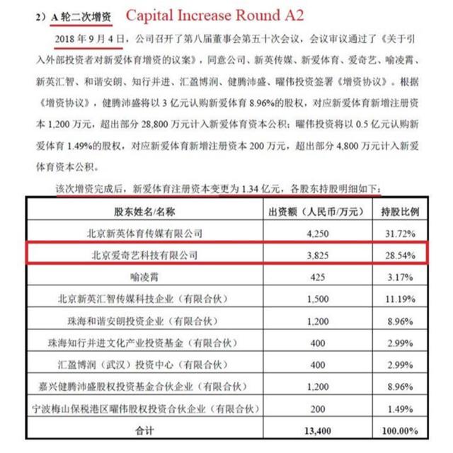 新爱的申请从未提及额外的非现金投资,也没有记录爱奇艺所声称的额外的7.775亿元人民币非现金出资的应收款。2018年,新爱体育获得了另外两轮融资,并两次增加了注册资本。额外的投资要比创始股东的出让金高价出售;因此,总出资额超过了注册资本,超出部分被报告为资本公积(“资本中额外支付的资本”或“ APIC”),并在审计师的信中进行了详细说明。