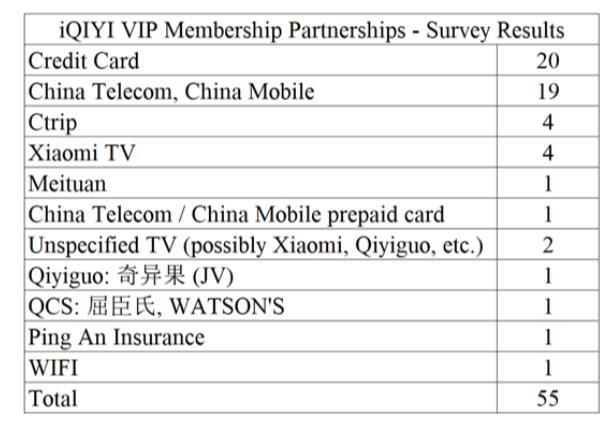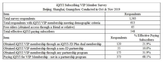 爱奇艺的管理层尚未提供有关双重成员的数量,通过这些伙伴关系带来的成员总数的百分比或这些伙伴关系中爱奇艺的实际收入份额的数据。爱奇艺的IR代表告诉投资者,与京东的收入分配为50/50,但没有透露与其他合作伙伴的交易的经济性。爱奇艺的IR还否认了京东双重成员资格和其他每个合伙关系对收入/ ARPU的影响,认为它们“可忽略”和“不重要”。