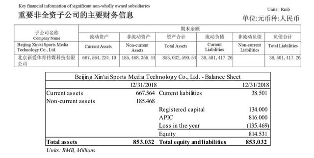 武汉明诚发布了几条公告,其中详细说明了新爱体育的所有权,并按每位股东及其总出资额进行了细分。 武汉明诚的审计师Mazers在给上海证券交易所的审计师信中,解释了每次增资前后每个股东的状况,包括在每个公告中向合资公司追加了哪些额外资本。