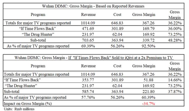 通过比较爱奇艺和武汉明诚(新爱的母公司)的公开备案,得出的结论是,爱奇艺记录的递延收入是欺诈性的,实际上不存在非现金出资。在爱奇艺的2018年报告中,它声称剩余的递延收入是人民币726,155,000元,“主要是与内容分发,知识产权许可和交通支持服务相关的递延收入,这些收入将提供给本集团的其中一名股权投资对象。”
