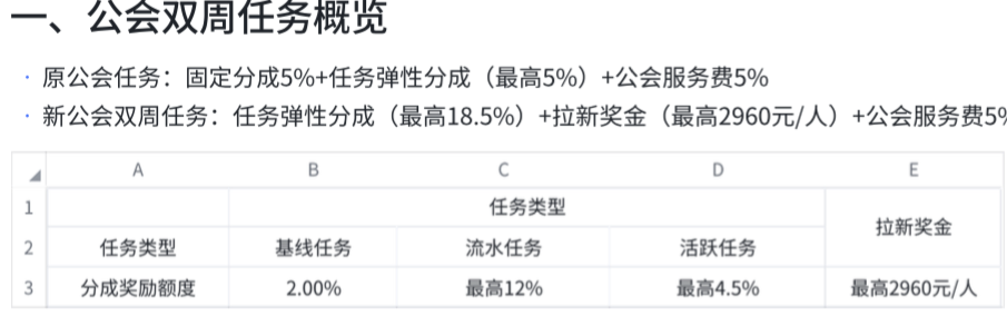 抖音规定的是双周任务,也就是双周的环比增量来决定公会能拿到的分成是多少。