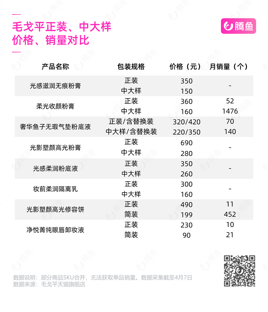 首先,是为粉膏、粉底液、修容等近10款明星商品设计专供电商渠道的中样和大样。这些中大样既靠近线上市场的畅销价格区间,也为品牌新客提供了较低的尝试门槛。