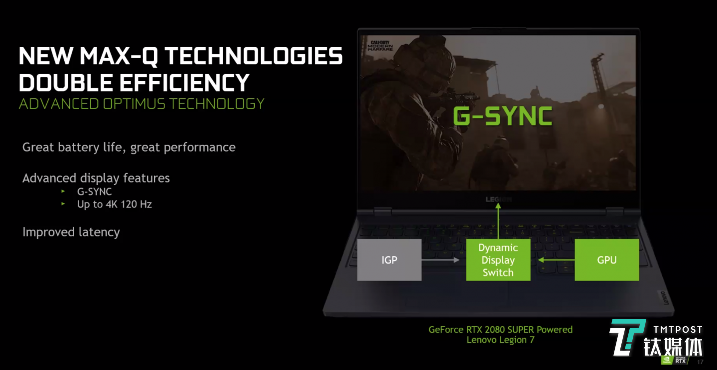 几年前NVIDIA Max-Q技术刚推出时就革新了游戏本行业,带来全新的便携笔记本电脑,它们比以往任何时候都更轻,更薄,更高效。现在,全新Max-Q技术带来双倍能效和一系列提高性能和电池续航的重大飞跃。