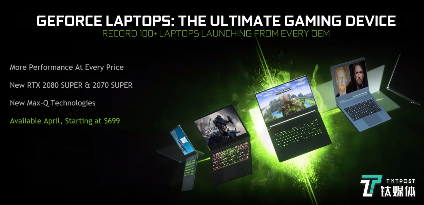 近日,英伟达宣布联手全球顶级OEM厂商,将陆续推出100多款超薄、超轻,且搭载GeForce GPU的笔记本电脑,包括将搭载最新发布的GeForce RTX 2080 SUPER和2070 SUPER GPU的笔记本电脑。
