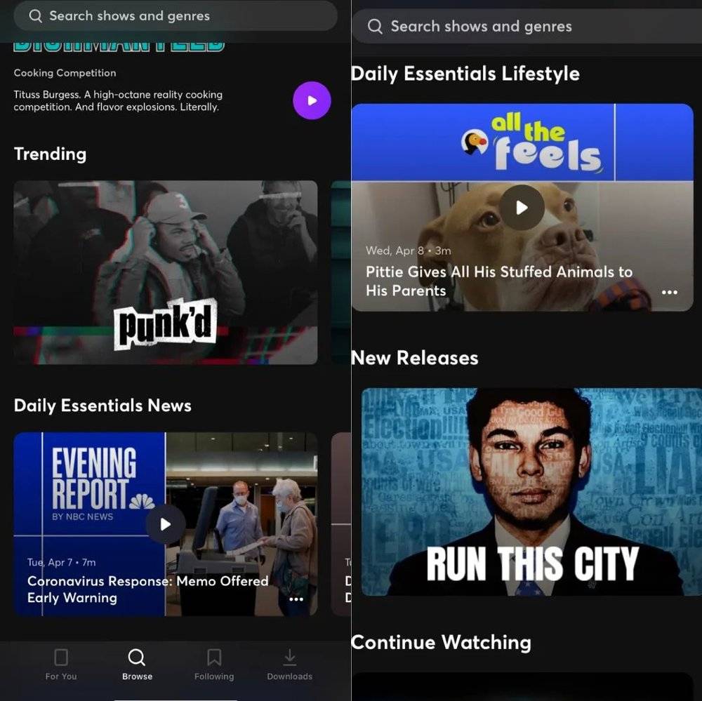 只上线7至10分钟短视频、仅适用于手机端的平台Quibi于近日上线,成为一个介于Netflix、Hulu、HBO、Disney+等流媒体平台与Instegram、Youtube和Tik Tok等短视频平台之间的新型流媒体平台。
