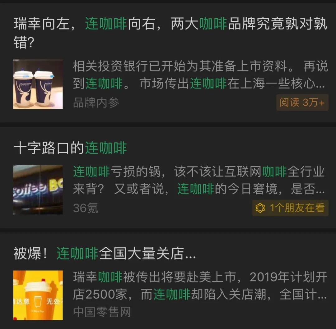 不过在微信搜索连咖啡,一样没什么好消息