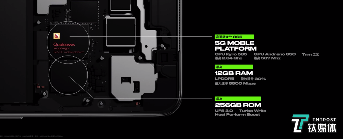 此外,OPPO Ace2还采用高通骁龙865移动平台,支持最高12GB LPDDR5,全系标配UFS3.0+TurboWrite+HPB 闪存,提供更好的综合性能以满足极客用户对高性能手机的需求。
