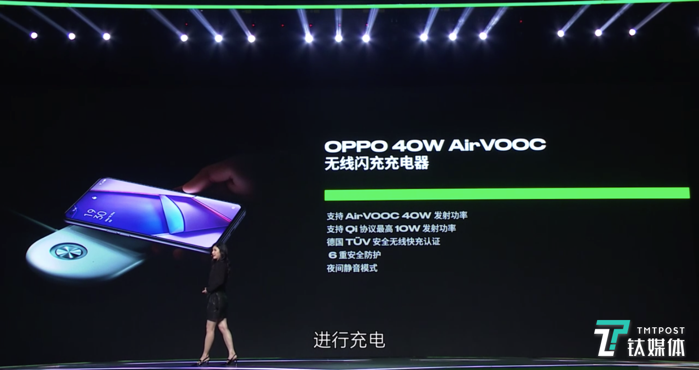时至今日,40W AirVOOC无线闪充的推出,标志OPPO闪充三条技术路线全部实现量产,并将持续稳定迭代。同时无线闪充速度赶超VOOC 4.0,预示无线充电将开始走向主流充电方式。
