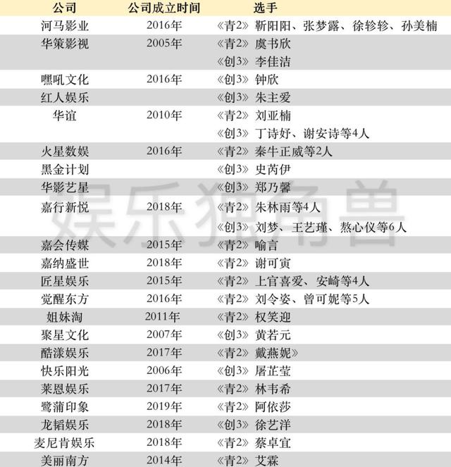 《创造101》后,杨超越原组合CH2女团火速解散、所属公司闻澜文化被收购;张紫宁出道后其公司麦锐娱乐频陷“倒闭说”;《青春有你2》选手傅如乔公司辰星娱乐,日前因霸王条款等违法行为被北京市朝阳区市场监督管理局予行政处罚……充满竞争力的市场,培训艺所需进行的投入与所耗费的精力,成为不少经纪公司生命中无法承受之重,当然其中也不乏只为借势收割一波红利者。