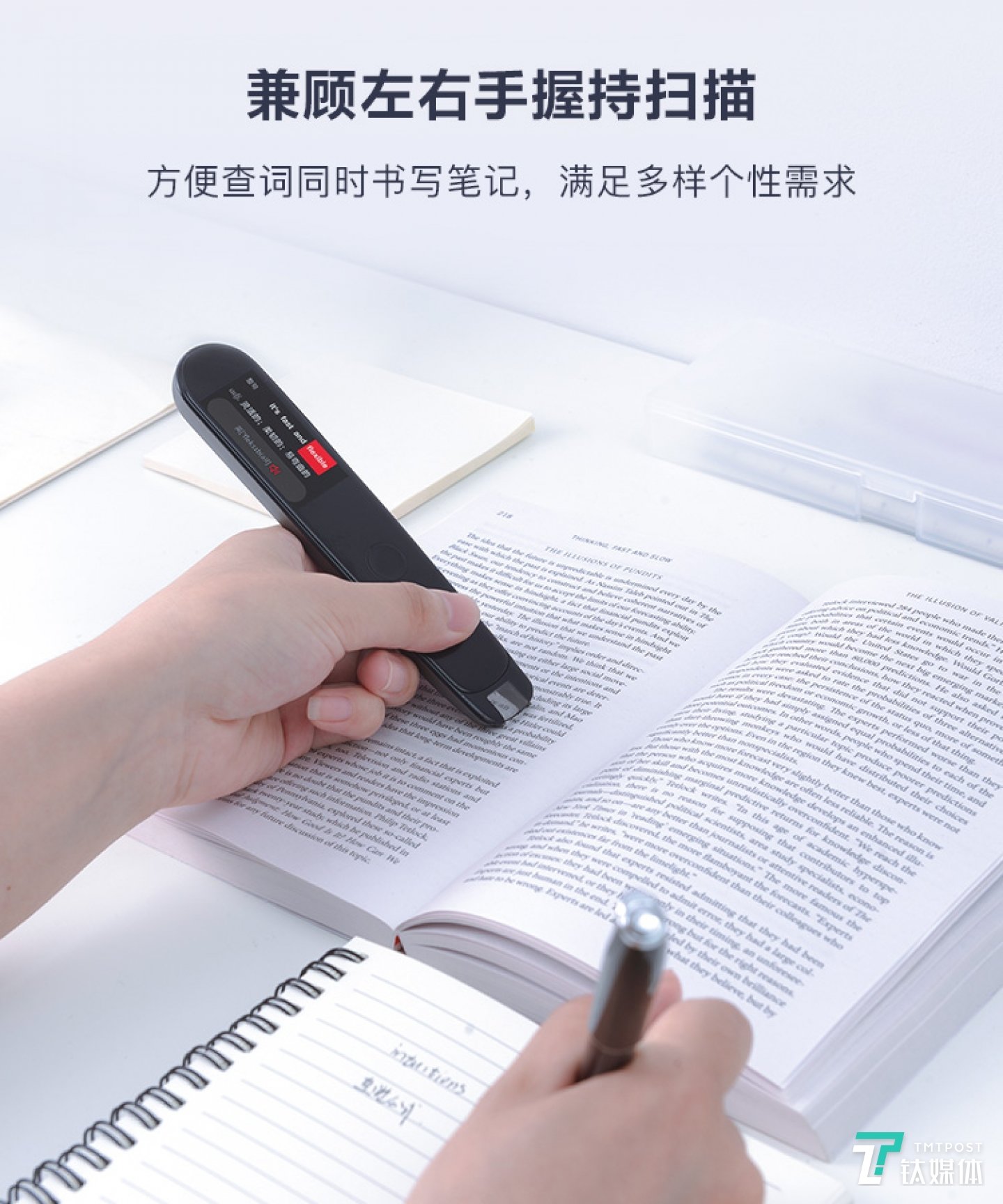 在直播中,老罗毫不掩饰对这款产品的喜爱,不仅因为它内置230万词条,一秒钟能扫描20个五号字体的字符,查词速度是普通电子词典的5倍,还因为它考虑到了左手型用户。