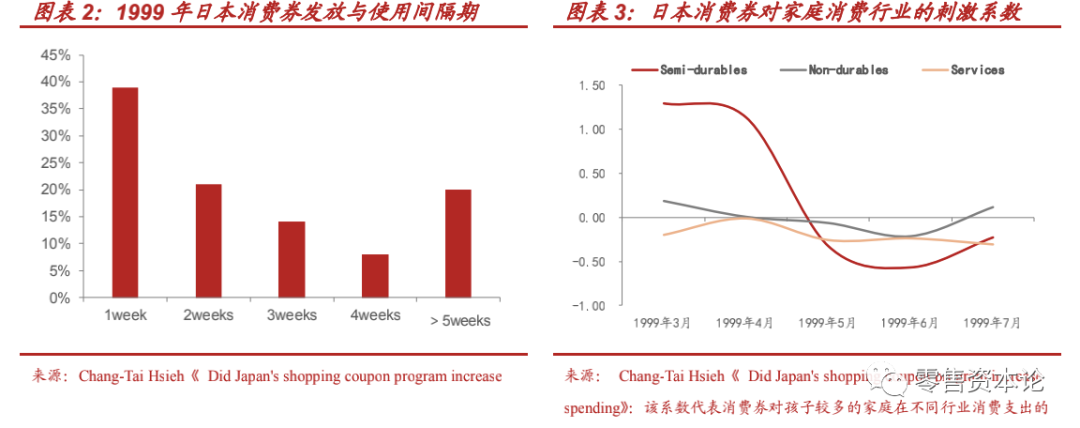 特别是,1999 年日本刺激消费发放的消费券,是作为过去 20年里,唯一全国范围内发放消费券以刺激消费的案例(2009 年我国杭州对67 万人发放消费券,而成都主要针对34 万低保或重点优抚对象发放的消费券,样本量太小使得对相关行业和公司的影响难以量化)。