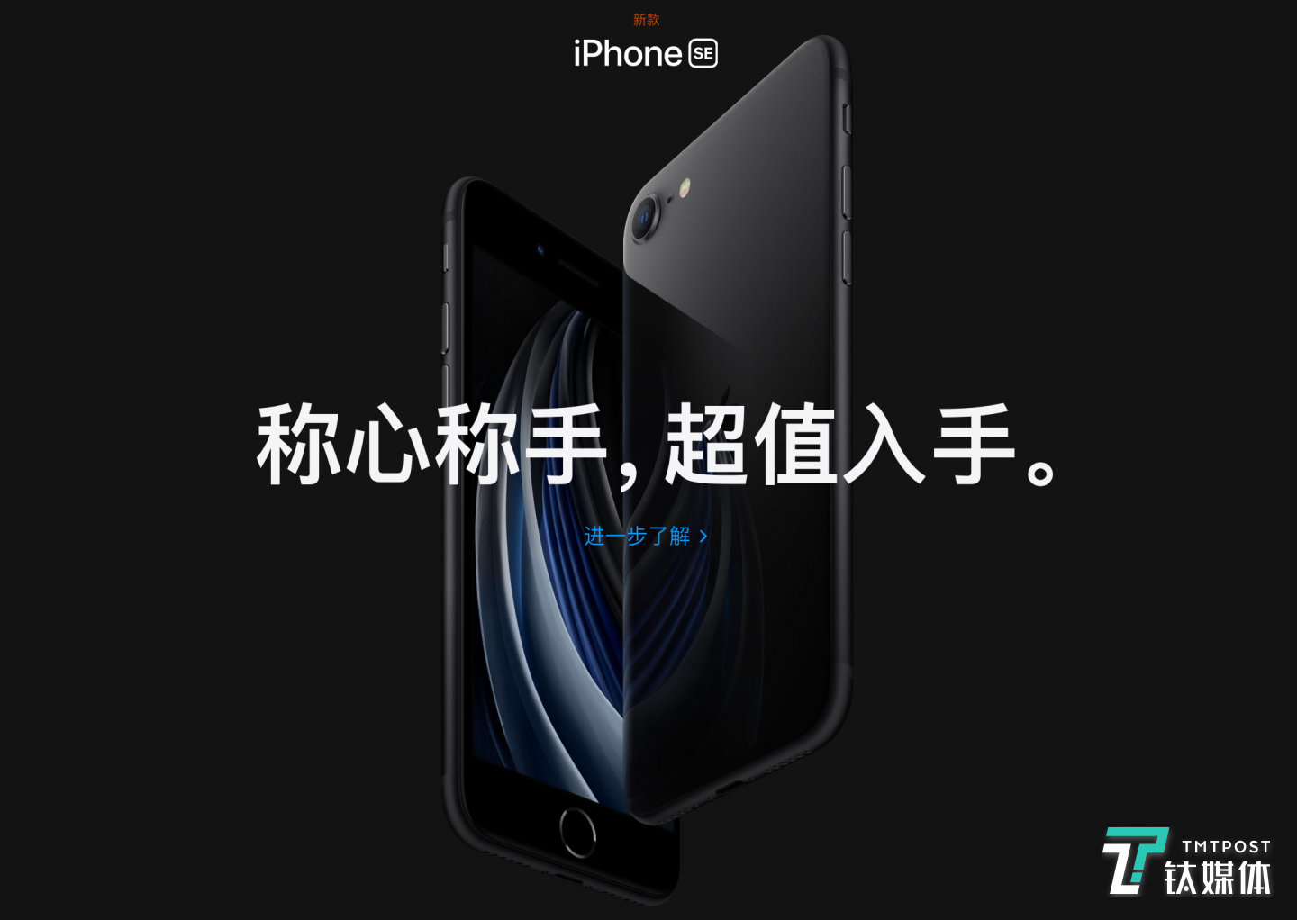 “称心称手,超值入手”。没有一点点防备,苹果跳过了发布会环节,悄悄在官网上更新了 iPhone SE,并附上了这样的宣传语。