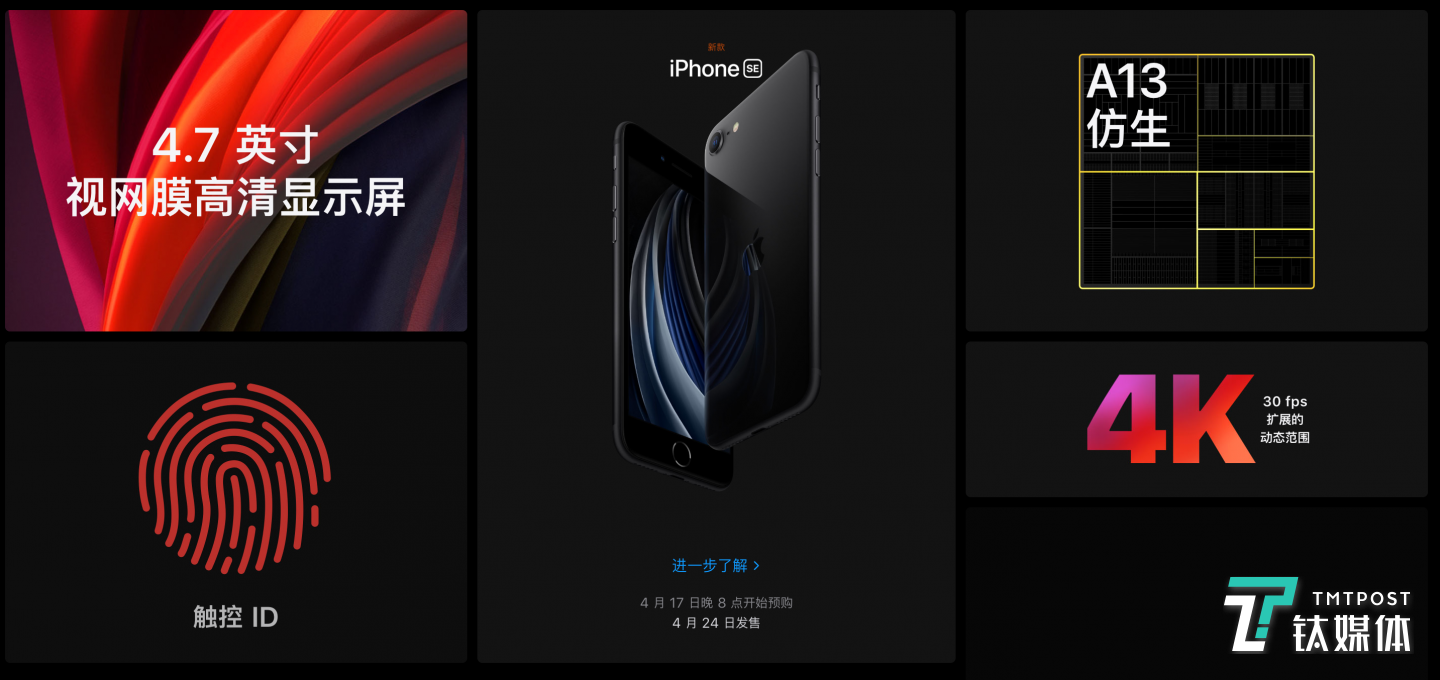 可见,苹果的目标非常清晰,新款iPhone SE很显然不是一个面向所有果粉的产品,它定位在于老用户升级,如果你是个苹果老机型用户,那么将是最佳选择,只需要花最少的钱,就能体验到最新的iOS以及A13。
