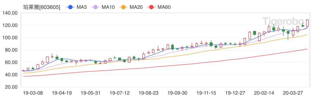 自2017年11月敲钟上市后,珀莱雅股价走出了上升曲线。截至4月16日,珀莱雅股价121.46元,对应市值244.46亿元,超过了2001年上市的龙头股上海家化(旗下品牌有美加净、佰草集和六神等)。