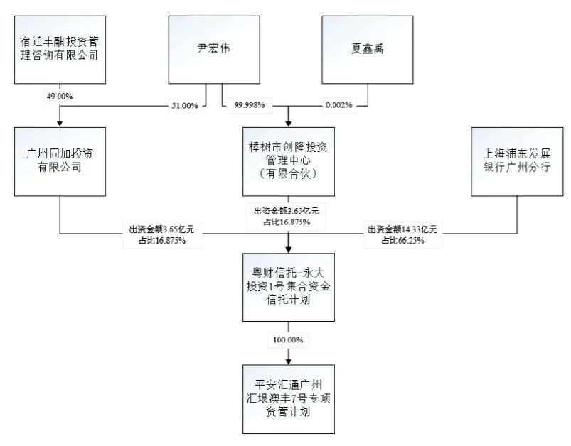 宿迁丰融投资管理咨询有限公司即是丰汇租赁的子公司。工商资料显示,丰汇租赁不仅直接出资,还向尹宏伟、广州同加、创隆投资等其他各级出资主体提供股份质押贷款。“中植系”也直接为融钰集团输血。公告显示,2018年7月,融钰集团向“中植系”核心平台中融信托申请1.3亿元贷款,2018年12月再次向中植系旗下的湖州嘉恒贷款人民币2.67亿元。