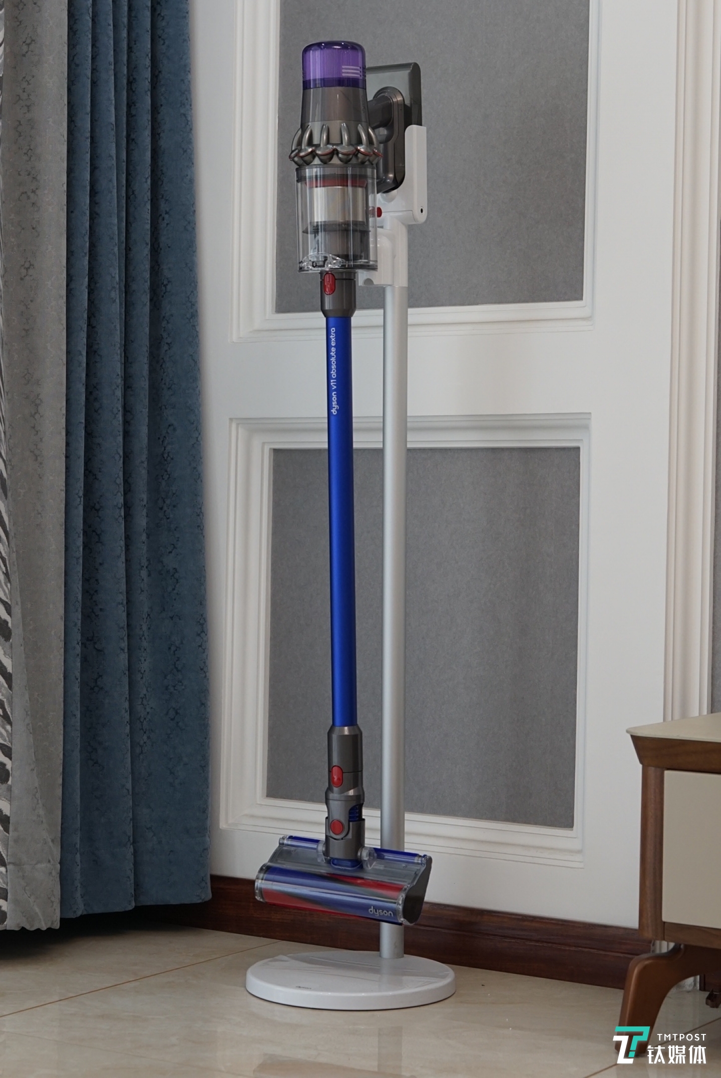 此前,戴森曾为V11 Absolute 配备过一个专用的充电底座,将产品放到底座上,可以巧妙的将充电线隐藏到底座管当中,避免线路外露影响家居环境,由于产品主体造型基本一致,新品 V11 Absolute Extra 在此前的底座上依旧可以完美贴合。
