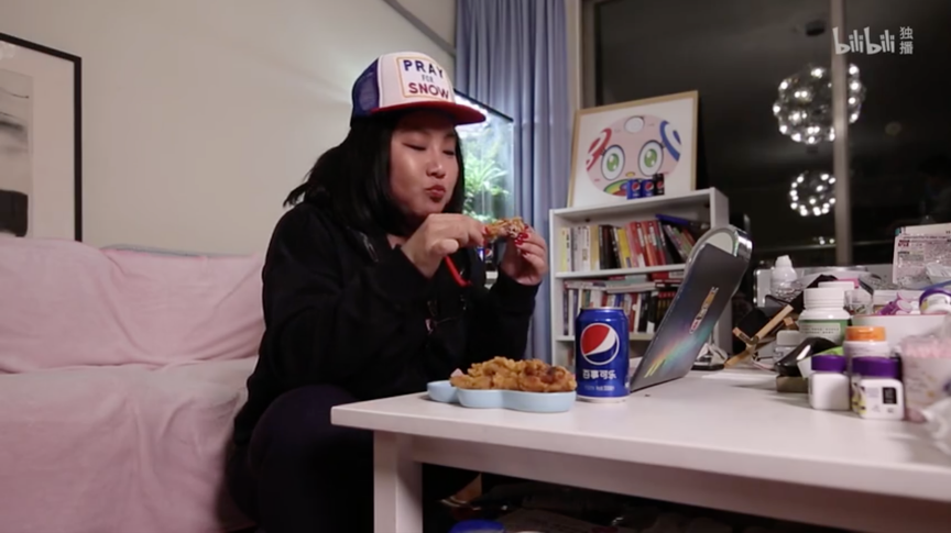 比如《奇葩说》辩手颜如晶在《闭关修炼指南》中尝试了吃播,在各个吃播场景中,百事可乐多次出现在餐桌上,事实上百事可乐与炸鸡、披萨,甚至中式的烤串、火锅一同出现的几率非常大,且是日常生活最为常见的现象。百事可乐不仅仅是“道具”,它更是承担了居家常备宅家快乐水的“角色”。事实上,百事可乐不用做过多的引导,仅是上述场景的呈现,相信也能击中很多同是宅家的年轻人。