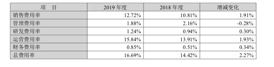 2018和2019年,期间费用构成见下图: