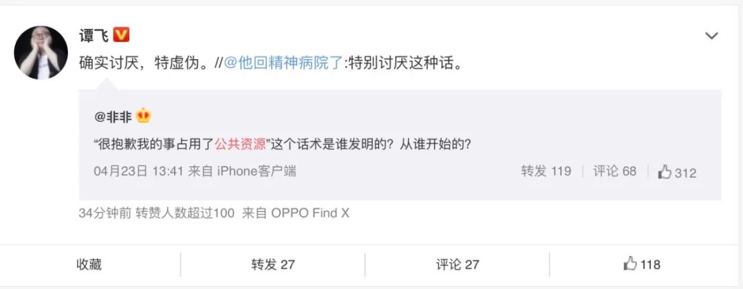 某种意义上,“不想占用公共资源”这句话本身正在成为公众人物圈子里的公共资源,早前一小撮人使用,这个资源是奏效的、能够带来正反馈的,但如果大多数人长期照搬,随着注意力的日渐消耗,其结果就是造成原本功能的失效,甚至招来反感。