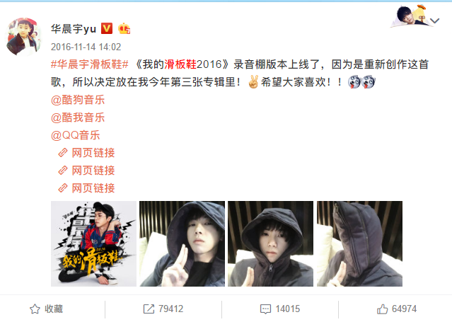 华晨宇也将《我的滑板鞋2016》放进了专辑中
