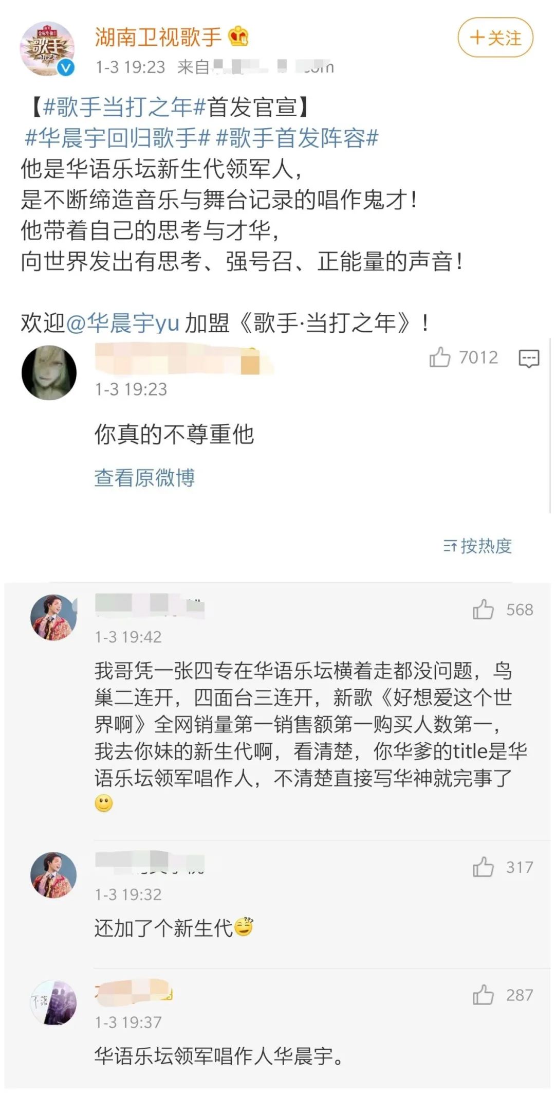 这些极端言论,再加上华晨宇本就“非主流”的音乐风格,开始将他置于风口浪尖。