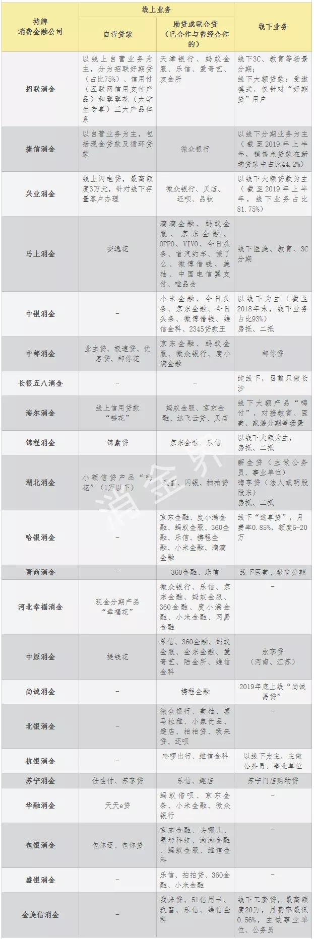 持牌消金主营业务盘点