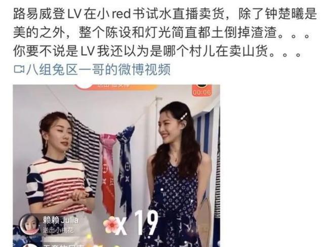 此外,还有LV在小红书的直播。3月26日,LV在小红书进行新一季新品的商业化直播首秀。LV这场直播由时尚博主程晓玥和演员钟楚曦担任主播,直播地点位于LV国内最大门店——上海恒隆广场的LV门店,单品是Escale夏日系列,总观看人数1.5万,人气值达626万。虽然LV作为奢侈品品牌主动放下架子向中国用户示好,但最后的结果却似乎是吃力不讨好——从事后反馈来看,这实在算不上成功,土气的布景和不专业的打光,反而被评价为“高贵印象全无。”