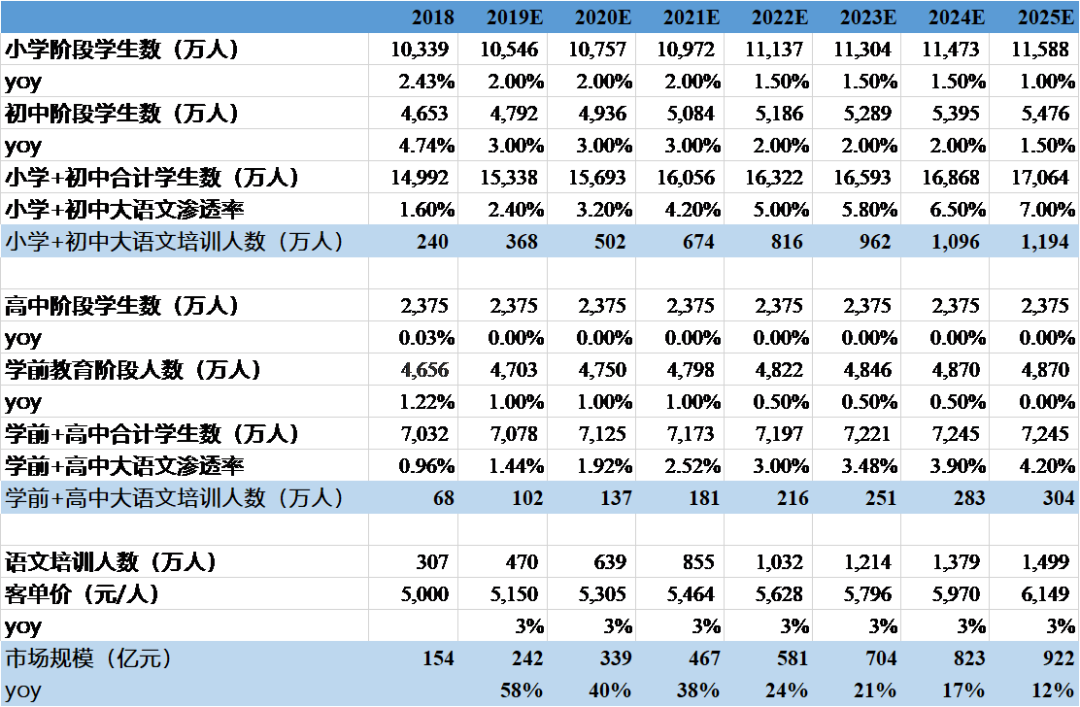 沙利文数据显示,2018年的K12领域市场份额为5205亿元,语文培训约为150亿元左右,占比不足3%。