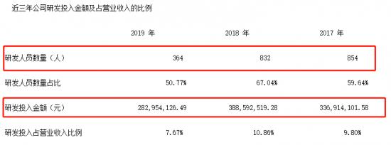 从昆仑万维的转型看,原来的游戏业务近年来已经被稀释很多,到2019年年报止,网络游戏营收仅占营业收入的40.76%,已经被社交网络业务的53.32%超越。其研发人员数量在去年出现了超一半的锐减,研发投入金额也开始减少。