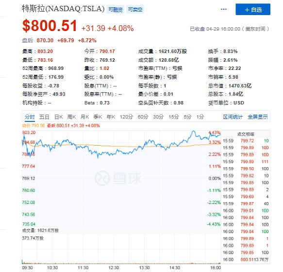 财报一经公布,特斯拉盘后股价应声大涨,截至目前涨幅8.72%,报800.51美元,最新市值达1472.87亿美元。从投资者的行动来看,特斯拉这份财报算是一份亮眼的财报。
