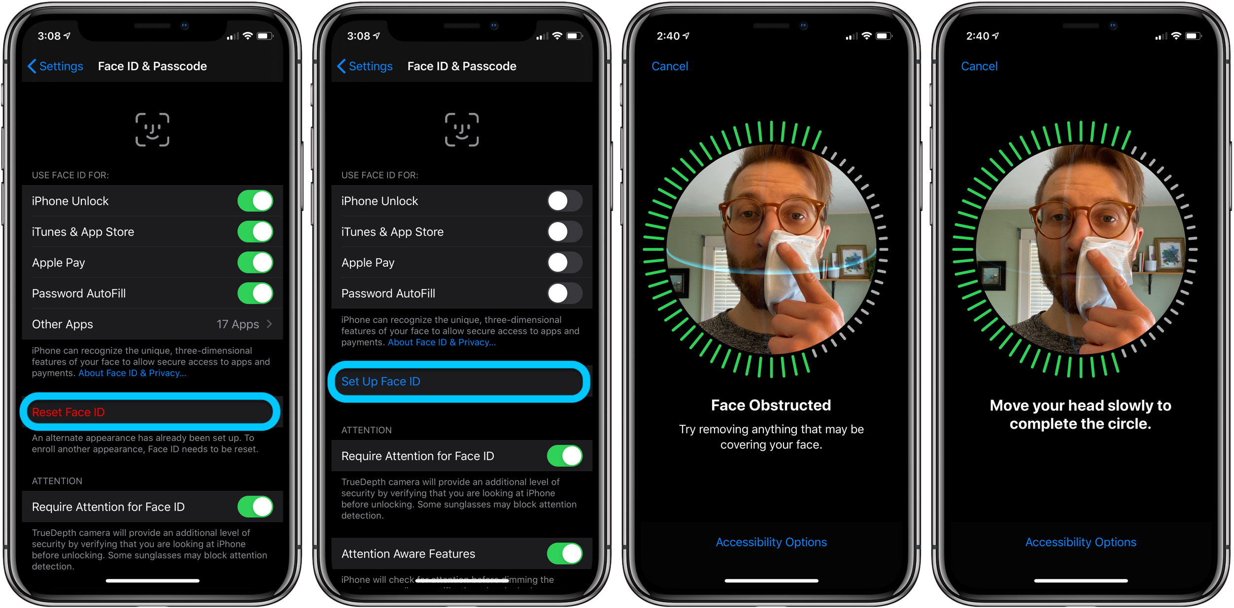或者用口罩遮住半边脸进行录制,也有机会能够骗过Face ID。