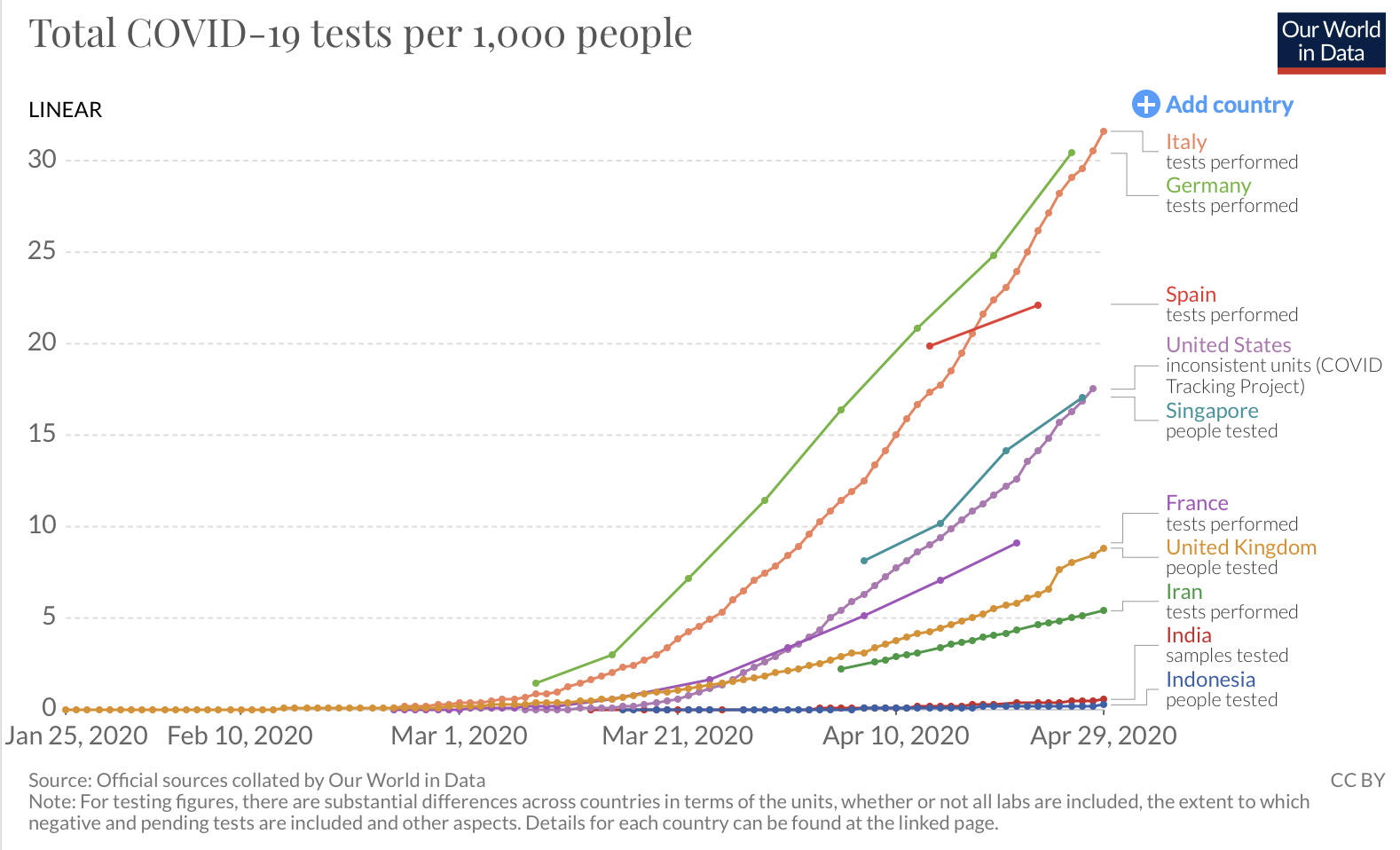 从技术上讲,西班牙、意大利的疫情逐渐转好,靠的是不断上升的大规模检测,哪怕是确诊人数在变少的当下也依然在加强监测力度。而美国目前的每日检测数量仅有30万次,远远达不到总统特朗普所宣称的200万次,人均总量更是迟迟上不去。