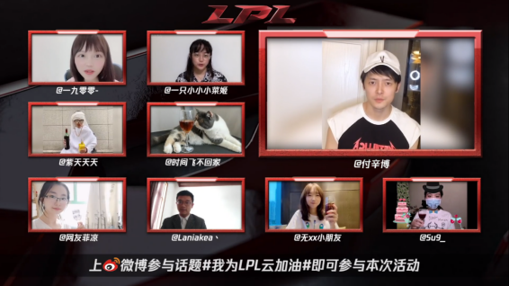 与此同时,在赛事内容方面,LPL还特地为线上赛增添了赛前云加油的环节。